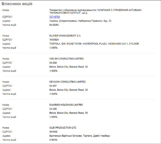 Помимо «Финансового капитала», акциями компании «А.В.С.» владеют 5 офшорных компаний, через которые основной держатель акций выводить миллионы, а то и миллиарды гривен из страны.