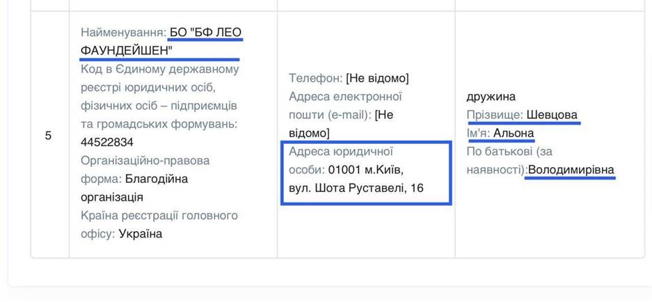 Крім того, змінилася і юридична адреса “Ньюз Флеш” — новою вказано вулицю Шота Руставелі, 16 у Києві. За цією ж адресою зареєстровано благодійний фонд “Лео Фаундейшн”, який належить Альоні Дегрик-Шевцовій — фігурантці низки журналістських розслідувань і особі, яка перебуває під міжнародними санкціями. За інформацією телеграм-каналу “СИНДИКАТ”, саме вона фінансово підтримує роботу сайту ua.news. Сайт неодноразово був помічений у інформаційних атаках на українську владу та бізнес в інтересах Дегрик-Шевцової.