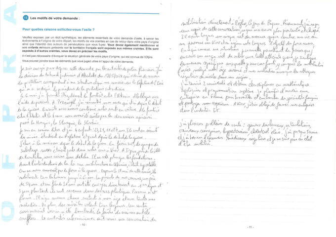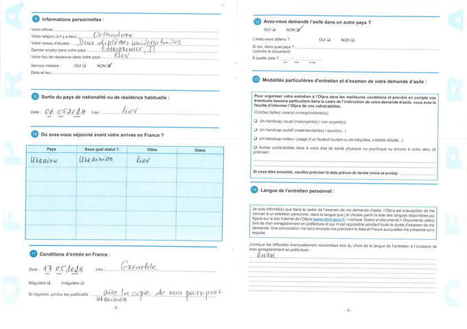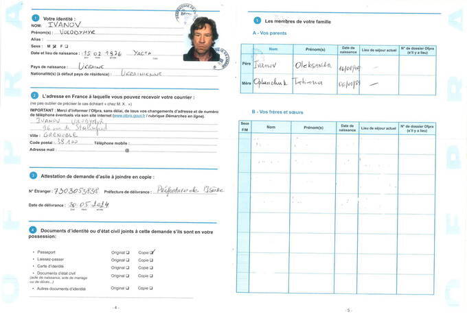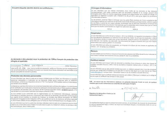 The document submitted by Ivanov complies with the requirements of Ofpra (Office français de protection des réfugiés et apatrides) and outlines his reasons for relocating to France. The main arguments include: